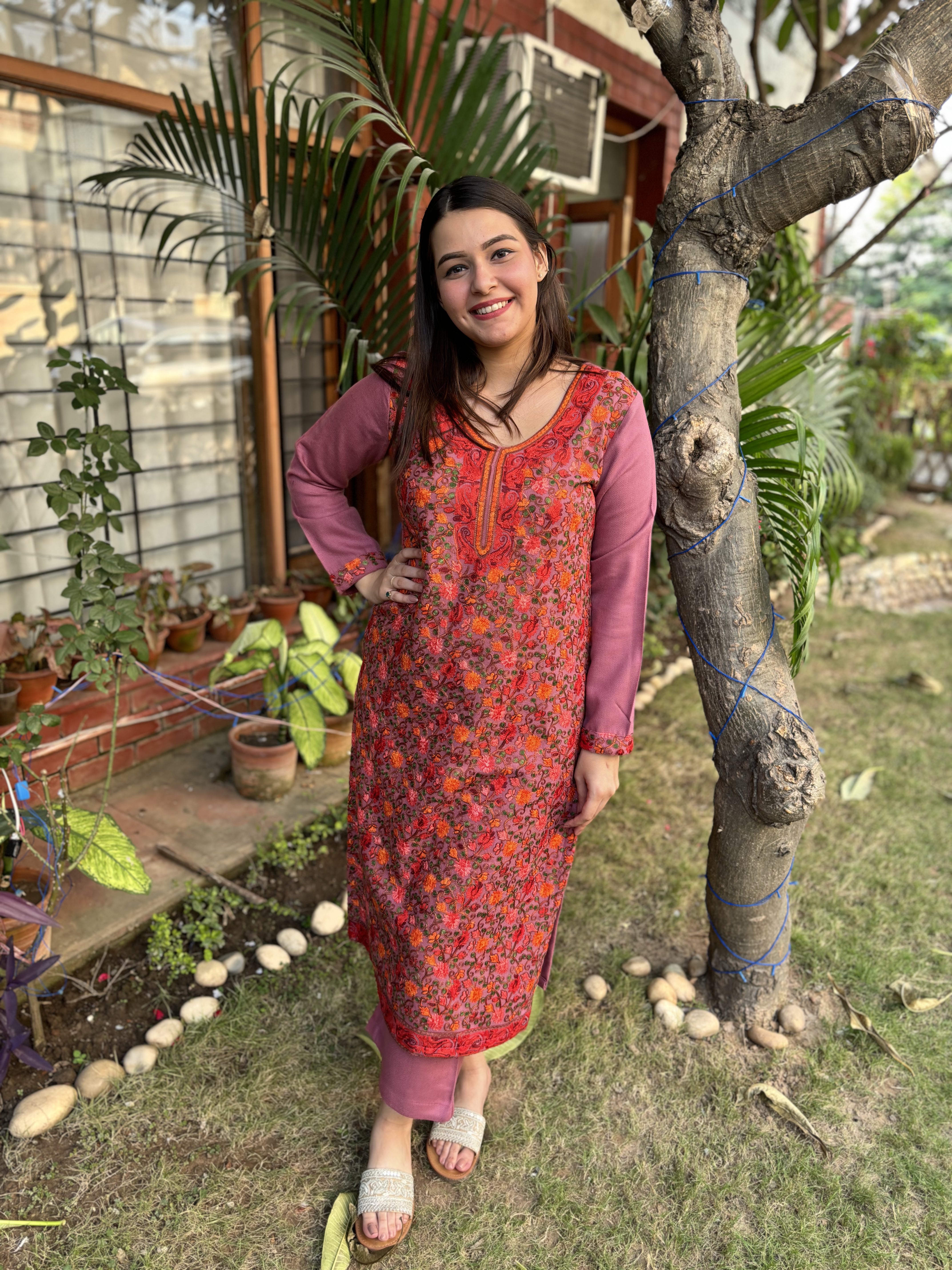 Pink Woollen embroidered Suit Set – Crafted Warmth, Himachali Heritage.