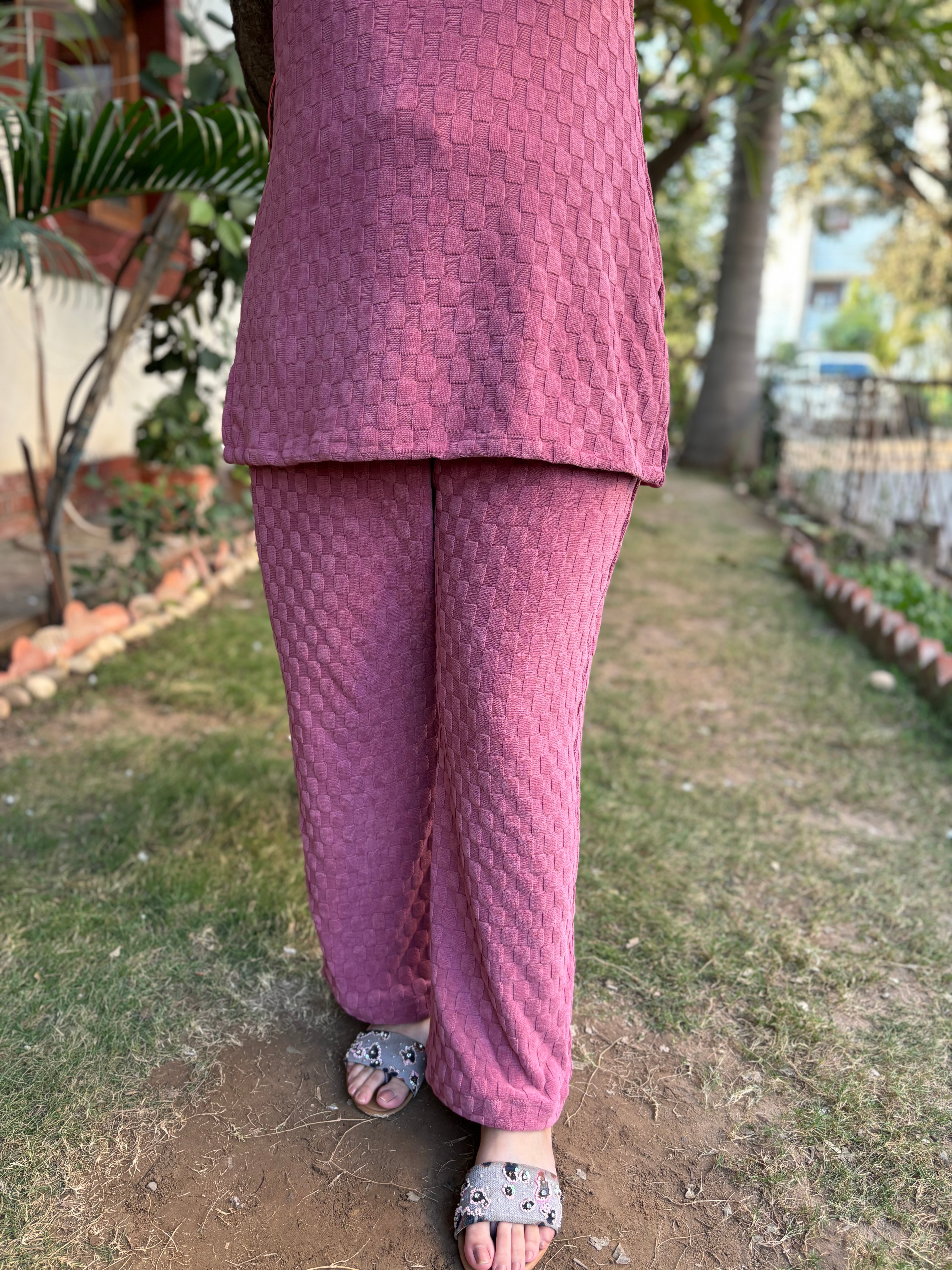 Pink imported woollen fabric palazzo. This the price of palazzo only. Made in warm fabric.