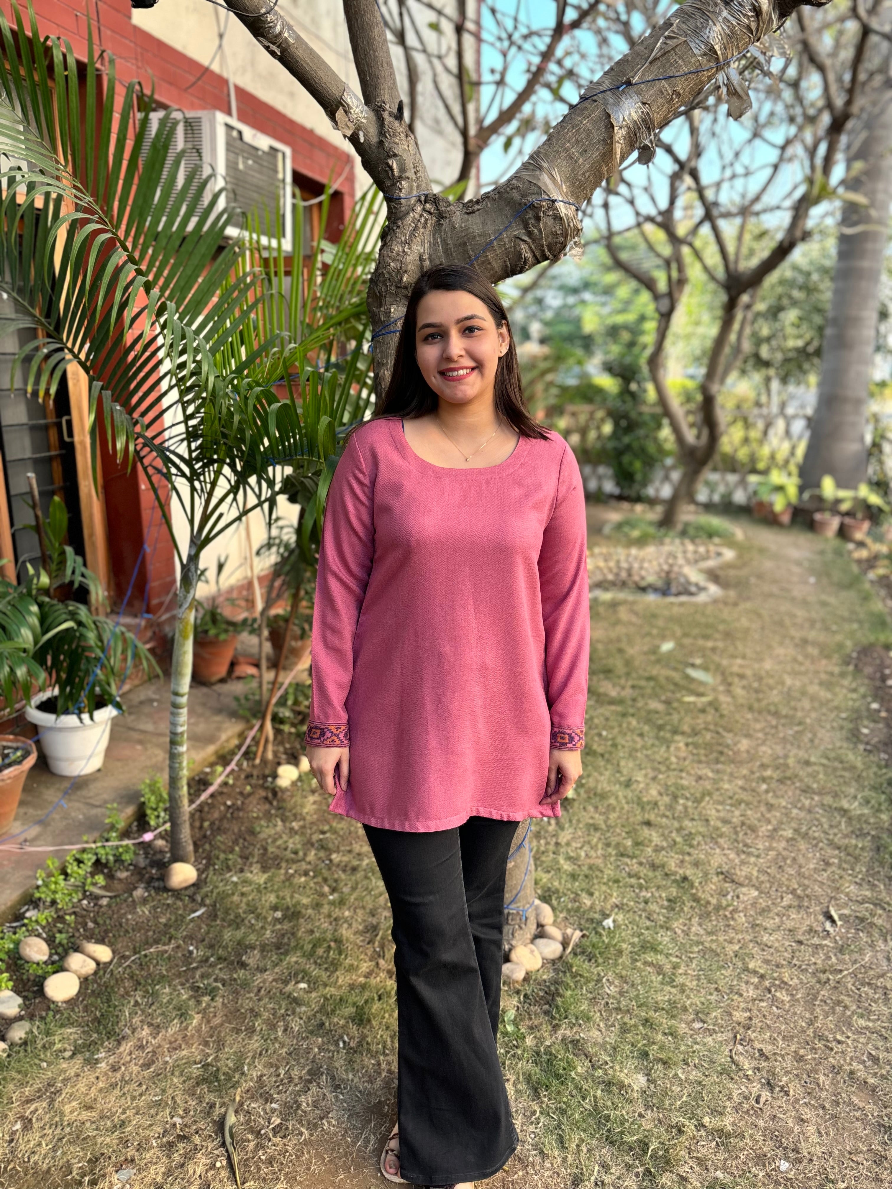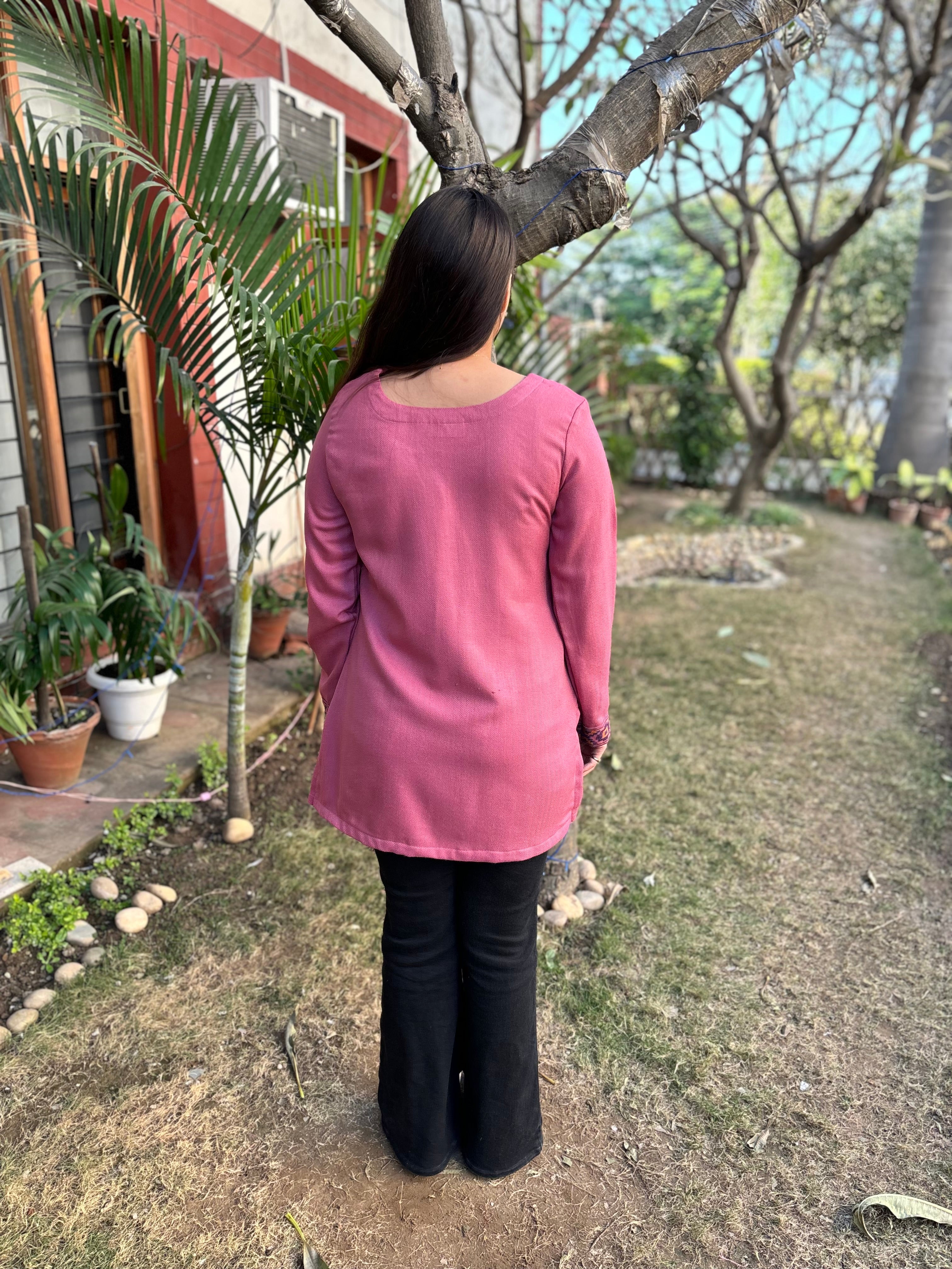 Pink solid woollen short kurti