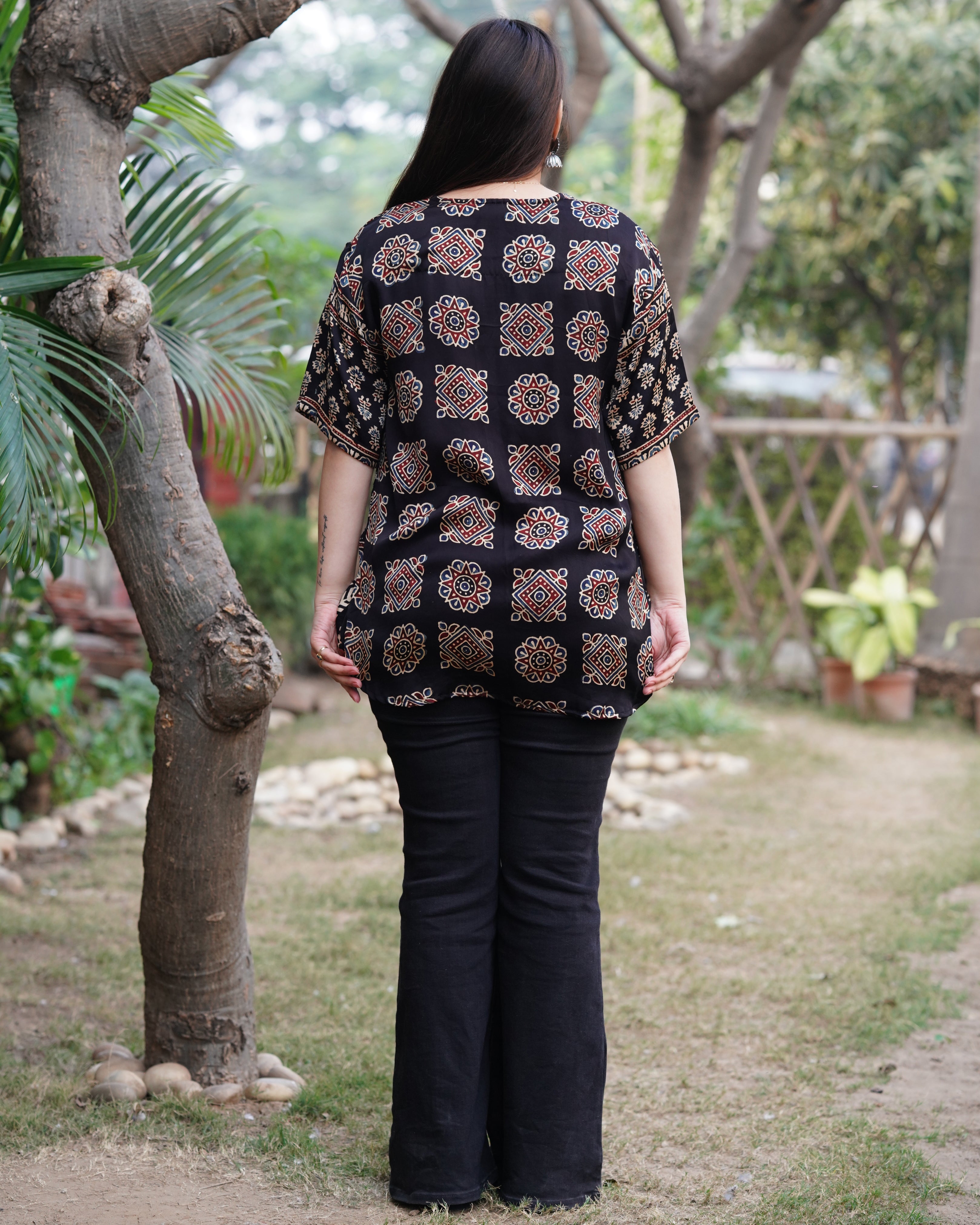 Black ajrakh Modal silk Shirt