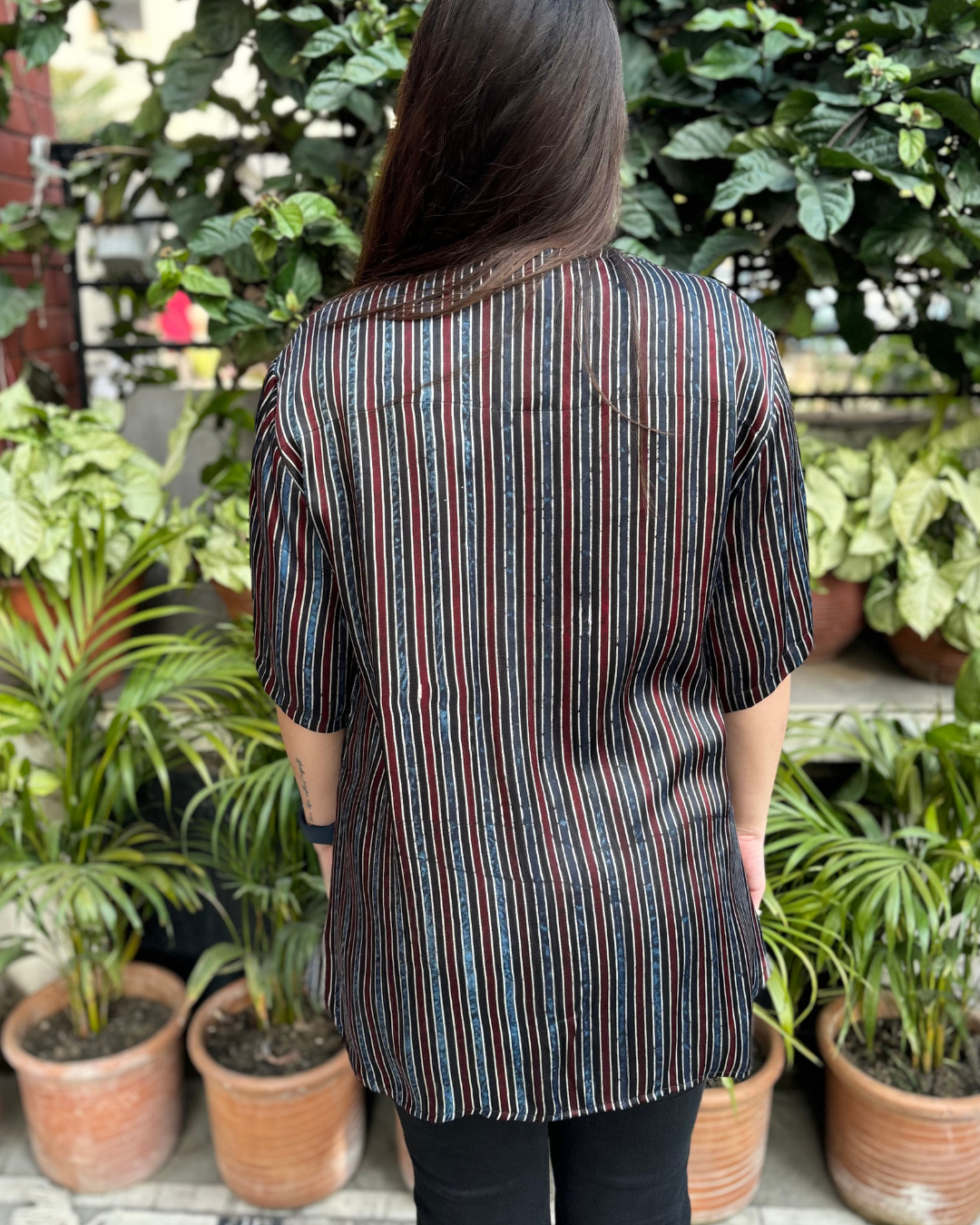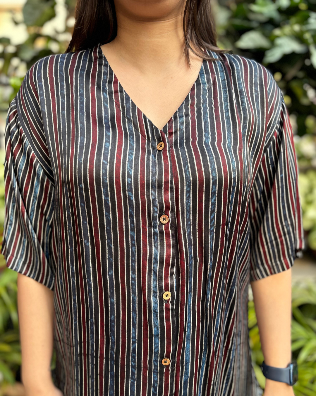 Light fabric that falls easily on the body and looks flattering. I loved the Kullu borders on the neckline and sleeves. Only suggestion I have for the team is not to call the colour 'rust'. Compared to the image shown, the colour is not bright and definitely not rust. Its more like a mustard and brown mix. Goes very well with the borders so no complaints :)