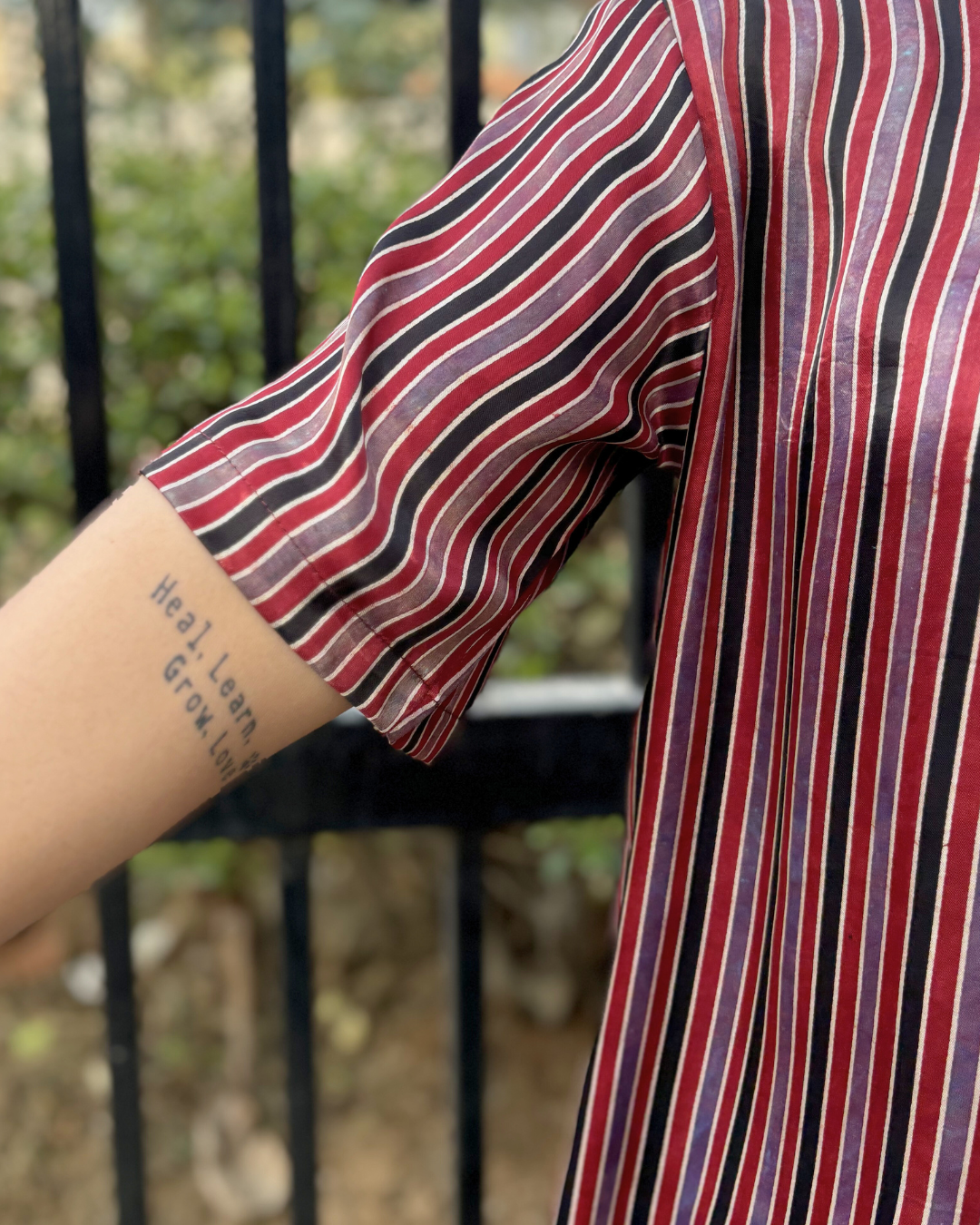 Light fabric that falls easily on the body and looks flattering. I loved the Kullu borders on the neckline and sleeves. Only suggestion I have for the team is not to call the colour 'rust'. Compared to the image shown, the colour is not bright and definitely not rust. Its more like a mustard and brown mix. Goes very well with the borders so no complaints :)