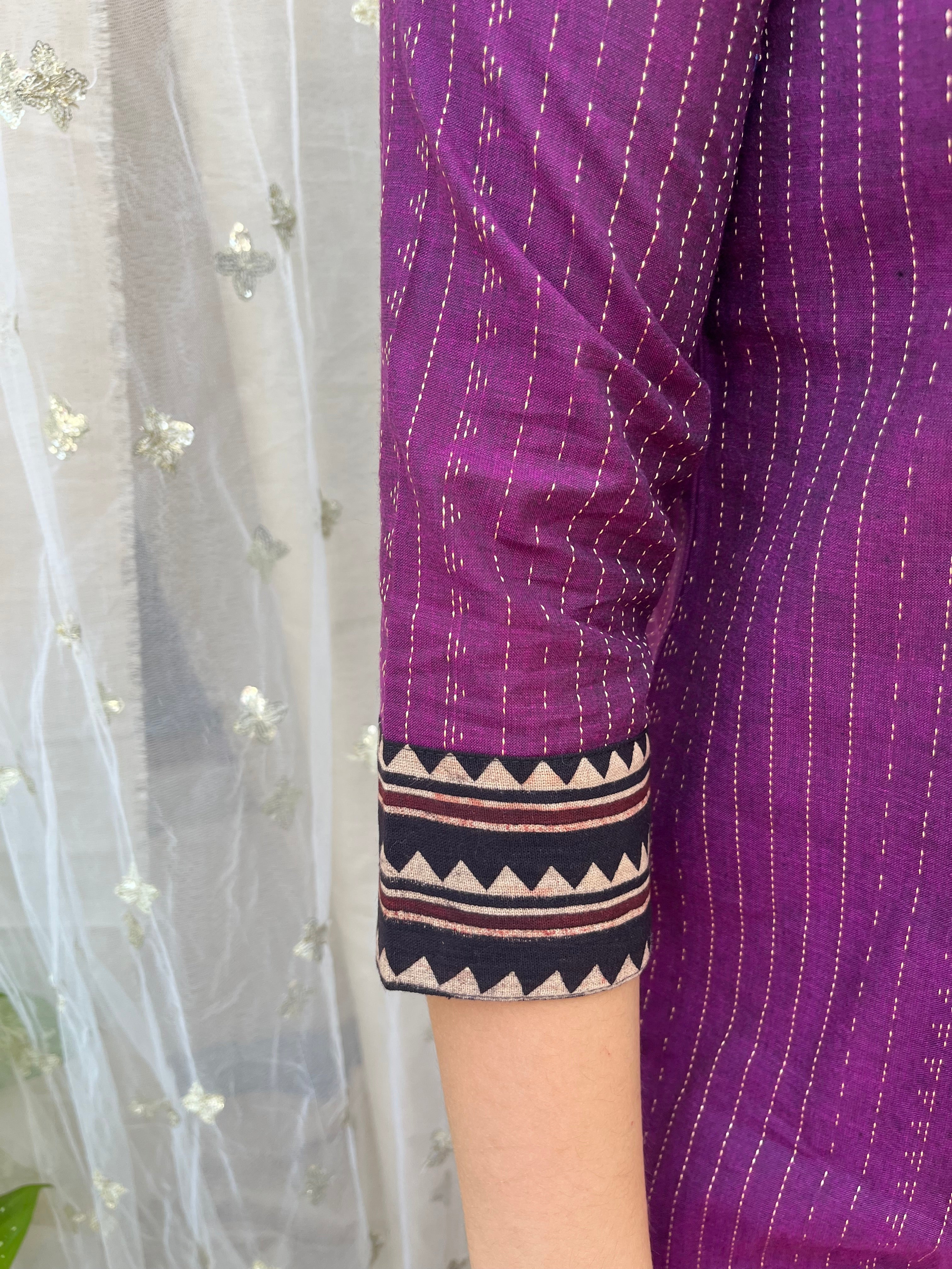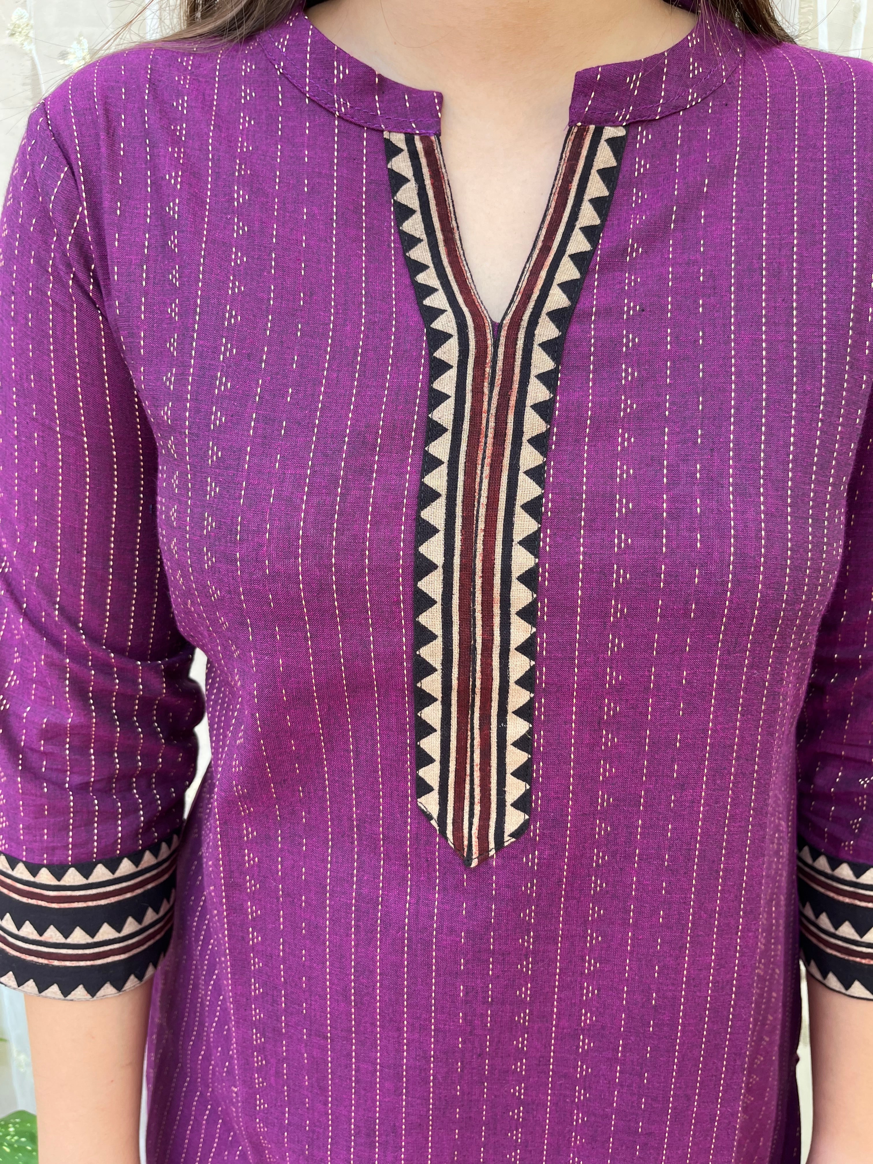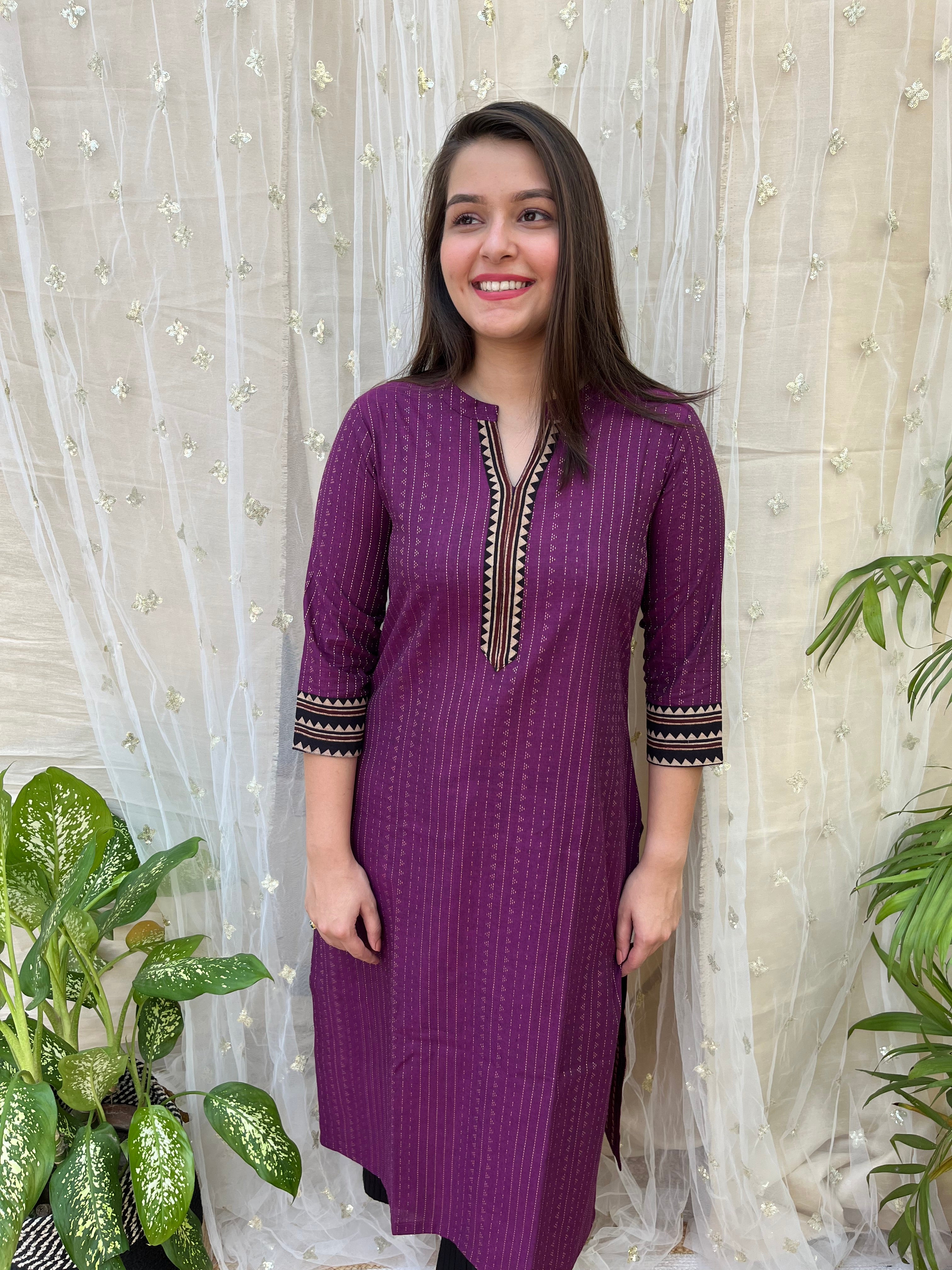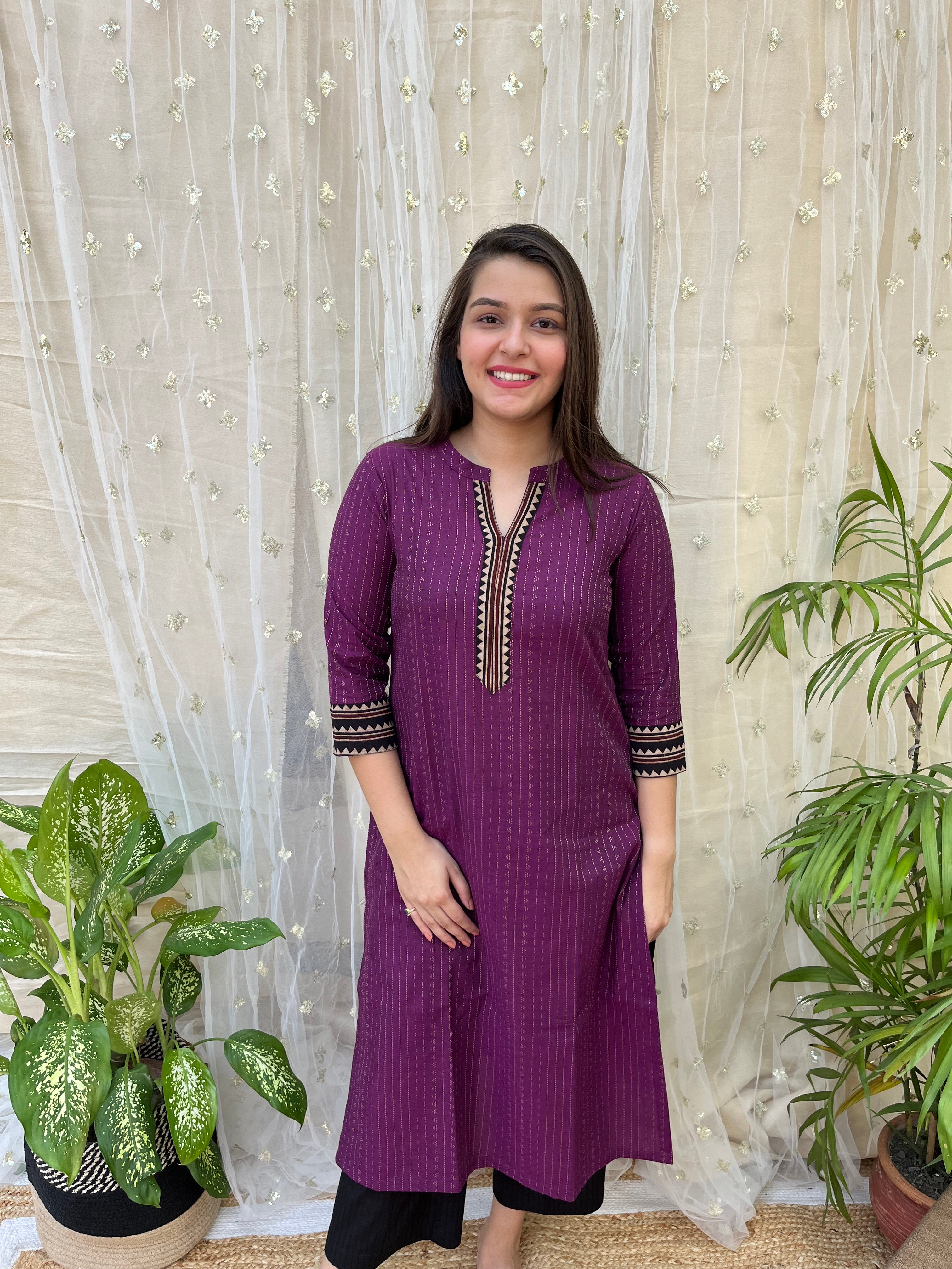 Purple Basic Ban neck kurta - MYSANSKRITAM