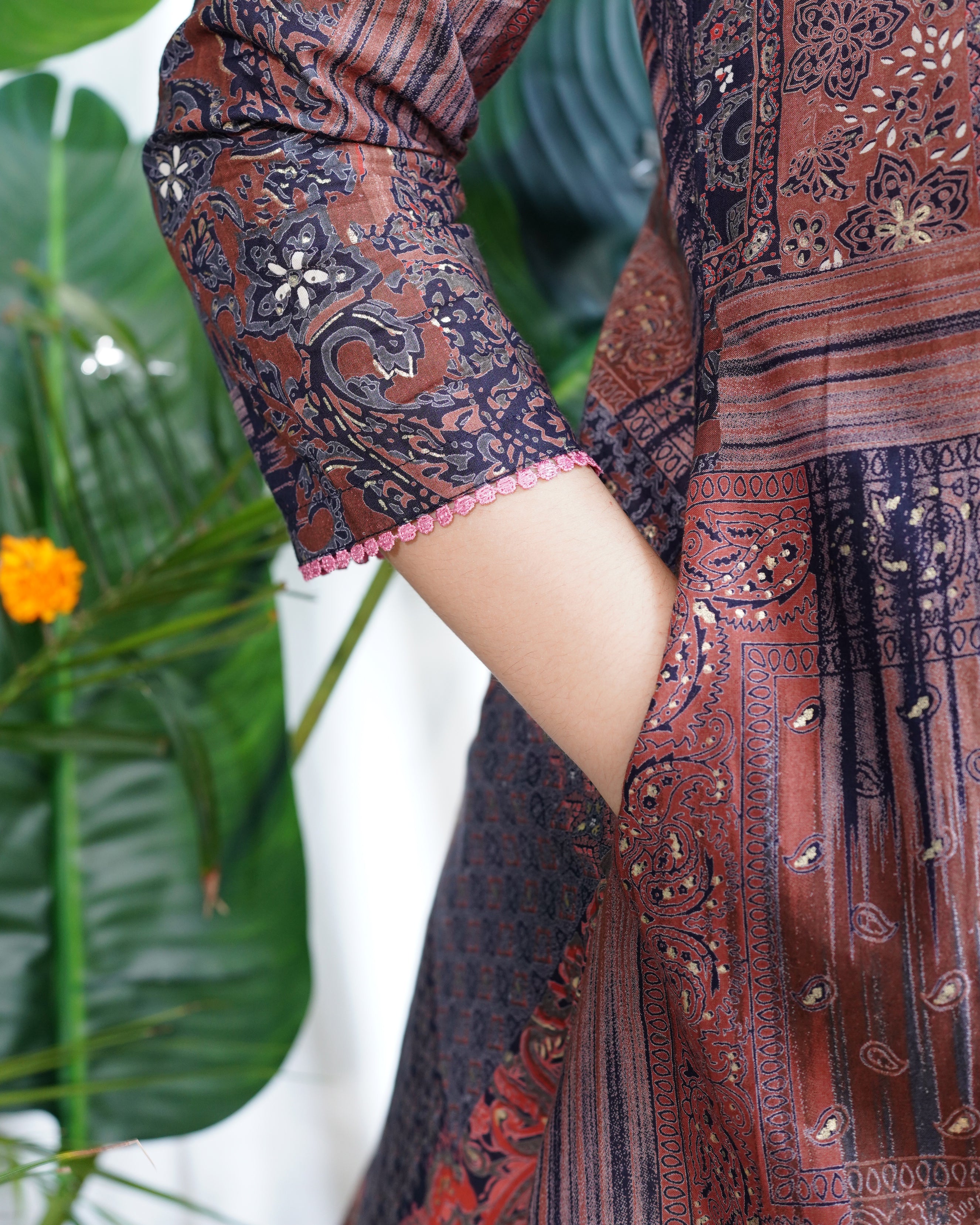 Maroon Bagru lacework kurta