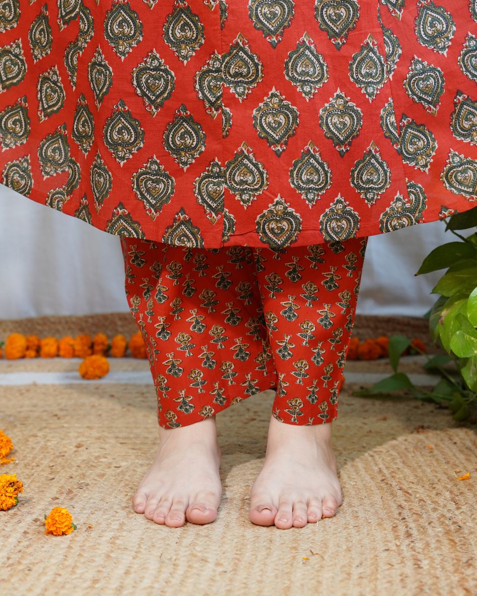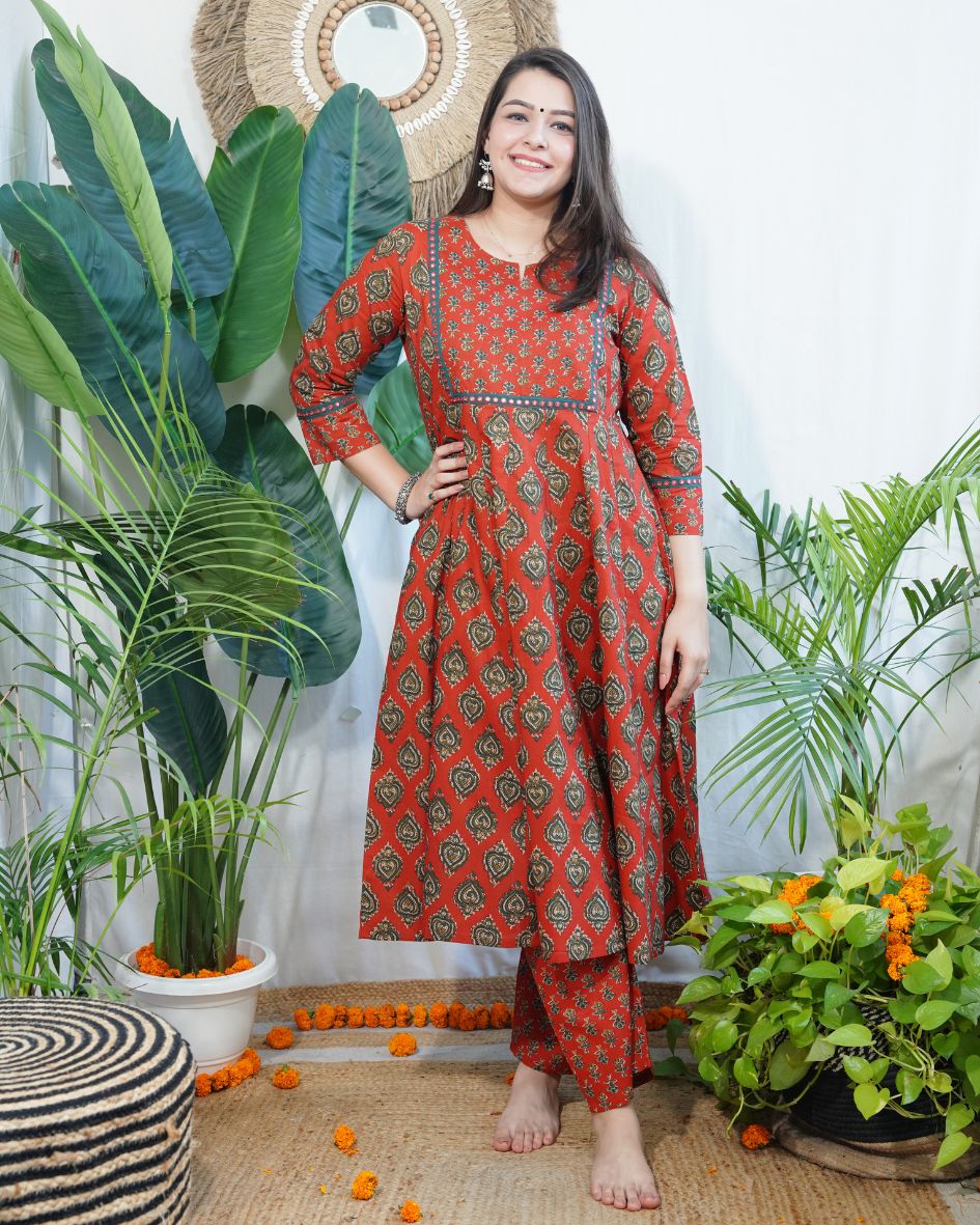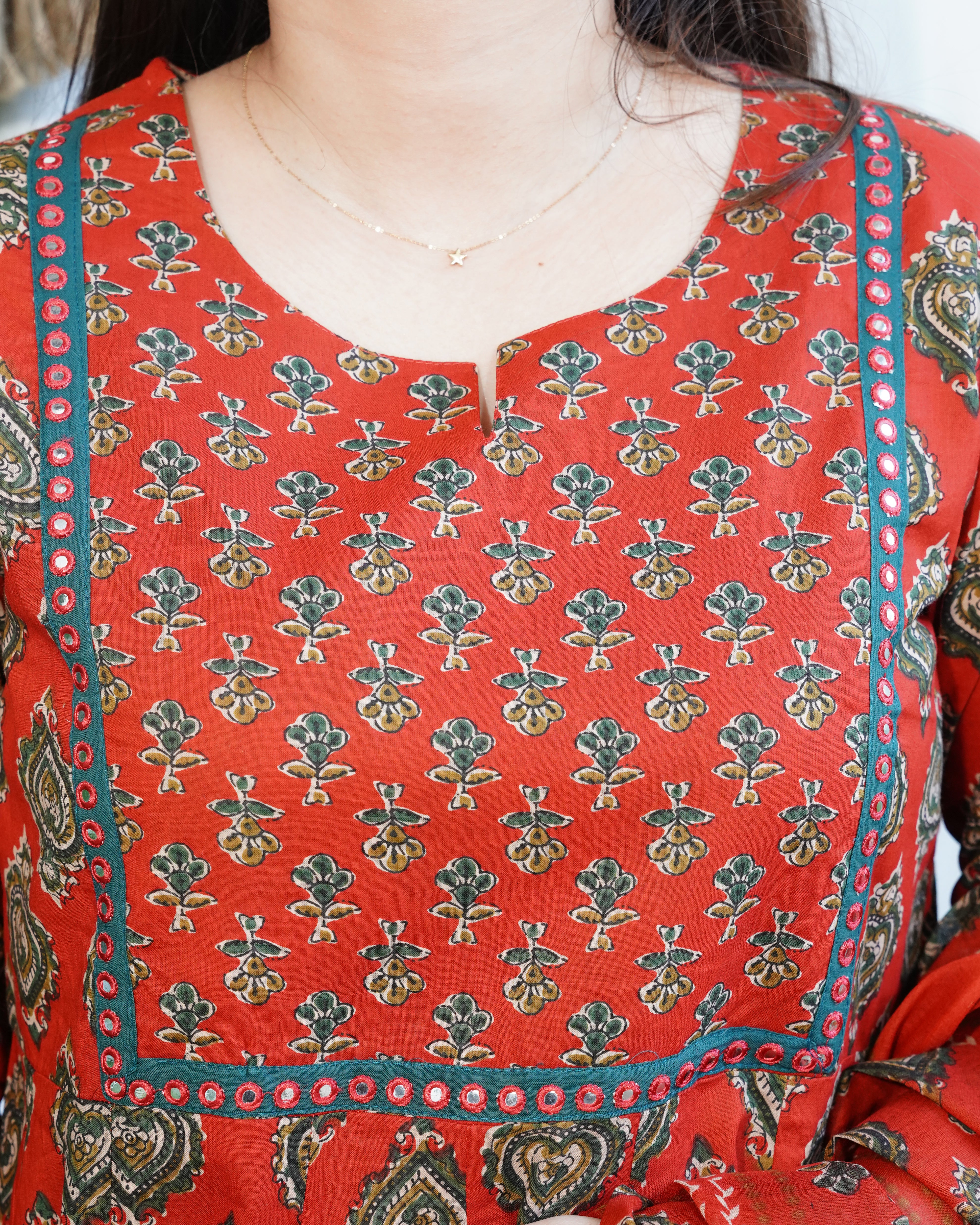 Jaipuri cotton kurta and palazzo matched with Mulmul duppata.