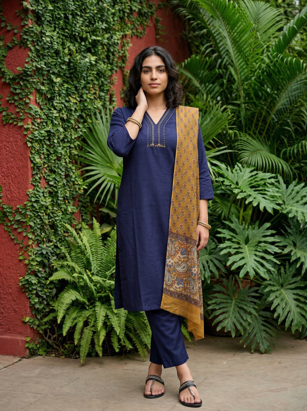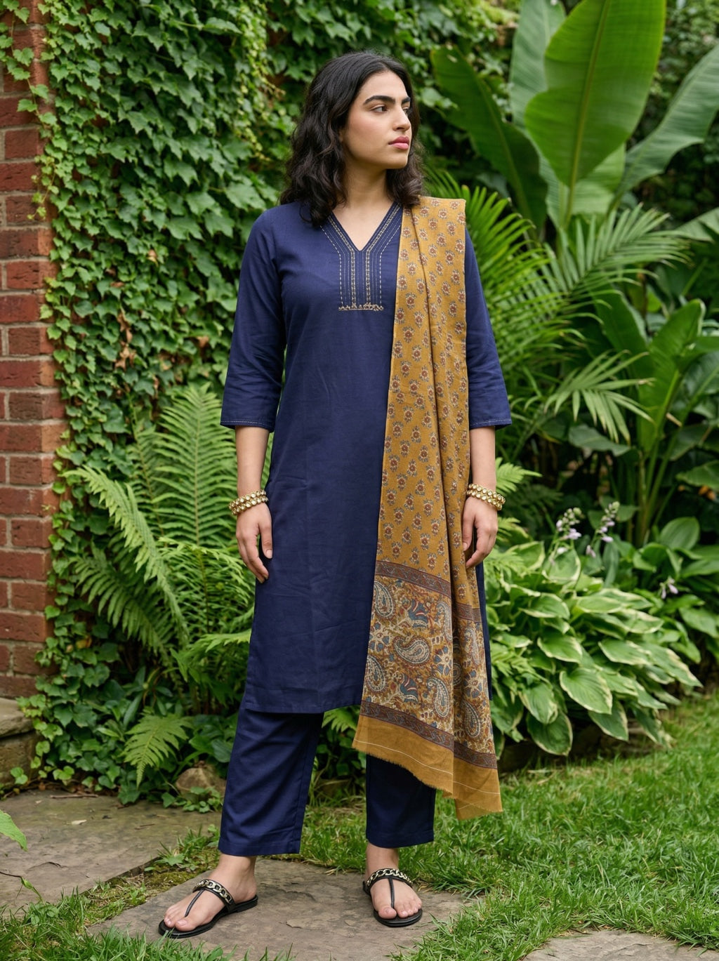 Solid Straight fit full suit set with matching duppata and palazzo.