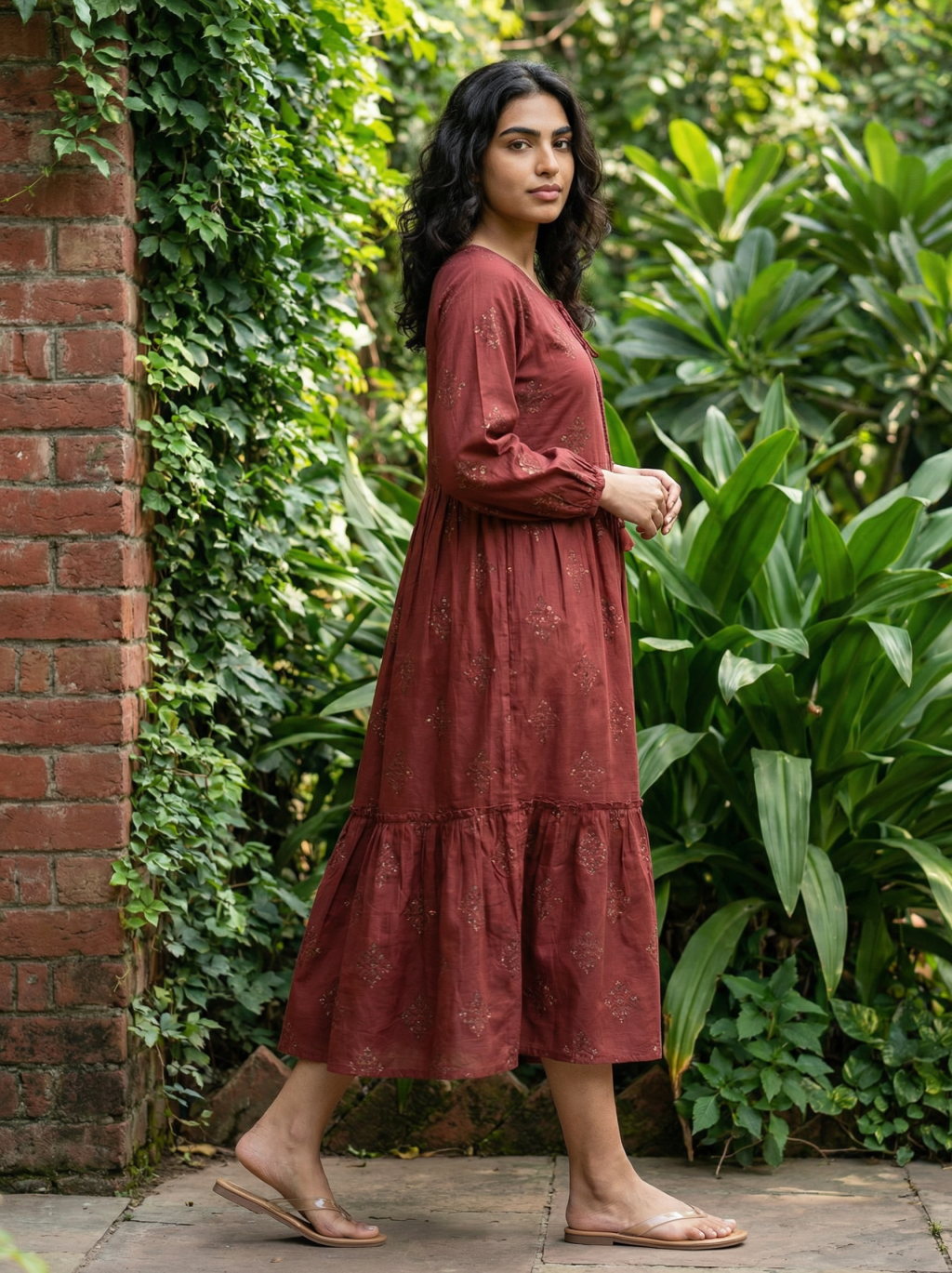 Rust gather geometric dress