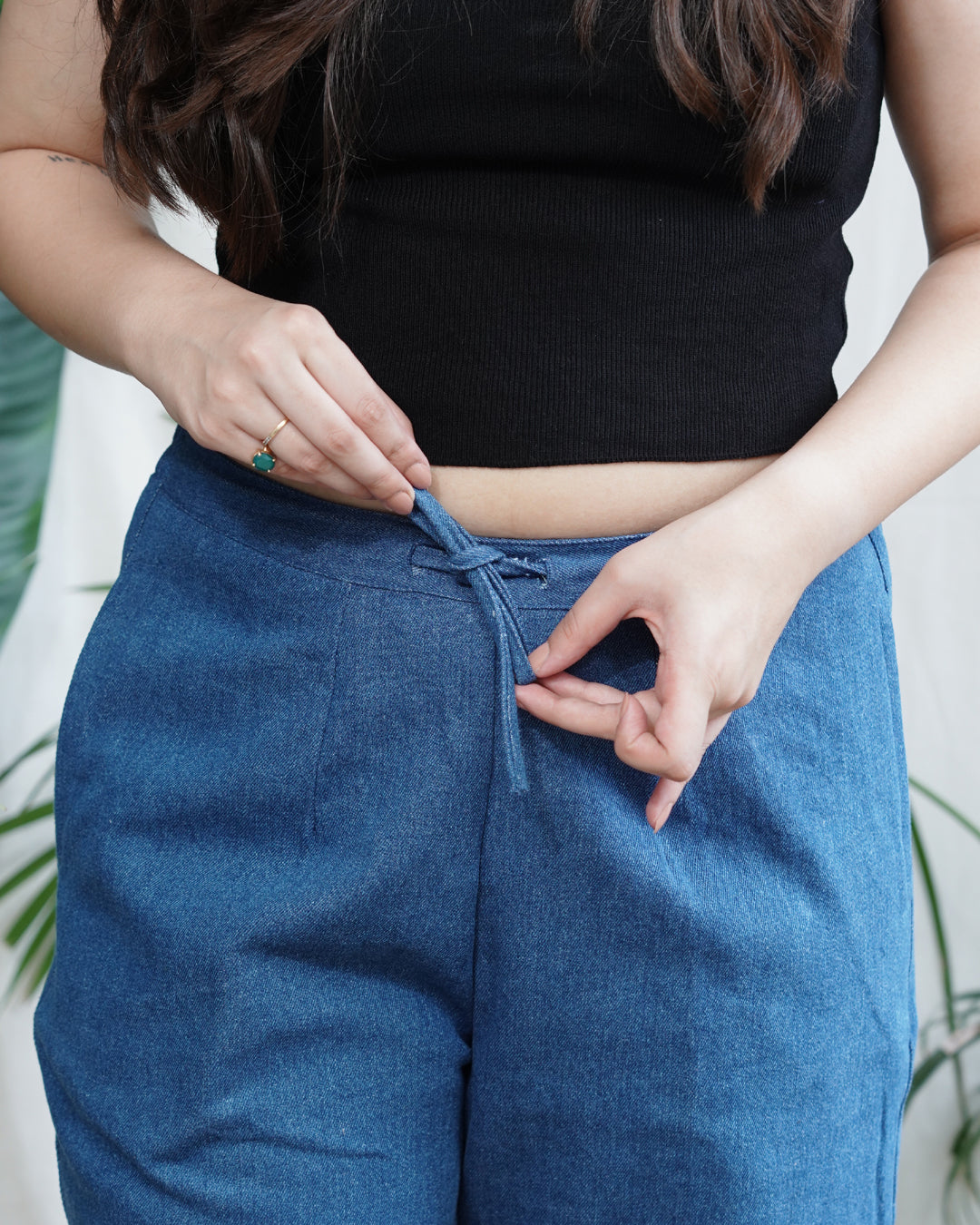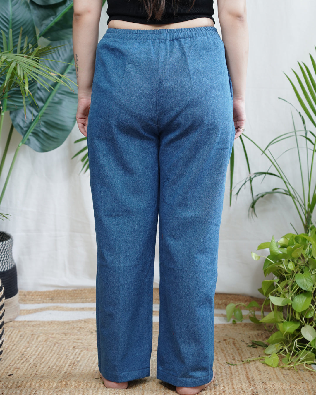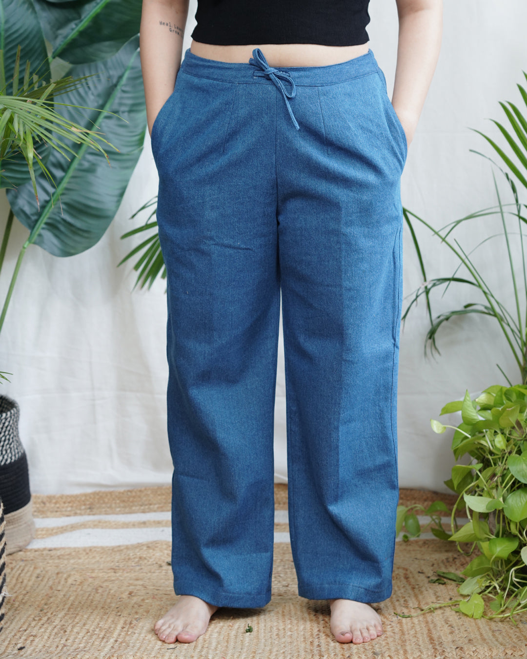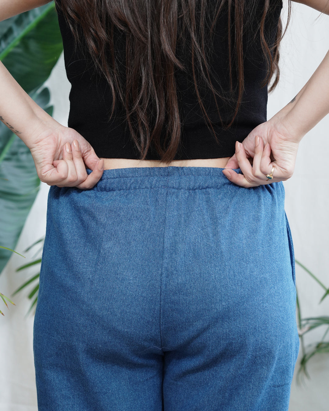 Breezy, breathable, and built for all-day comfort. These soft denim palazzos feature a relaxed fit and elasticated waist and pockets.